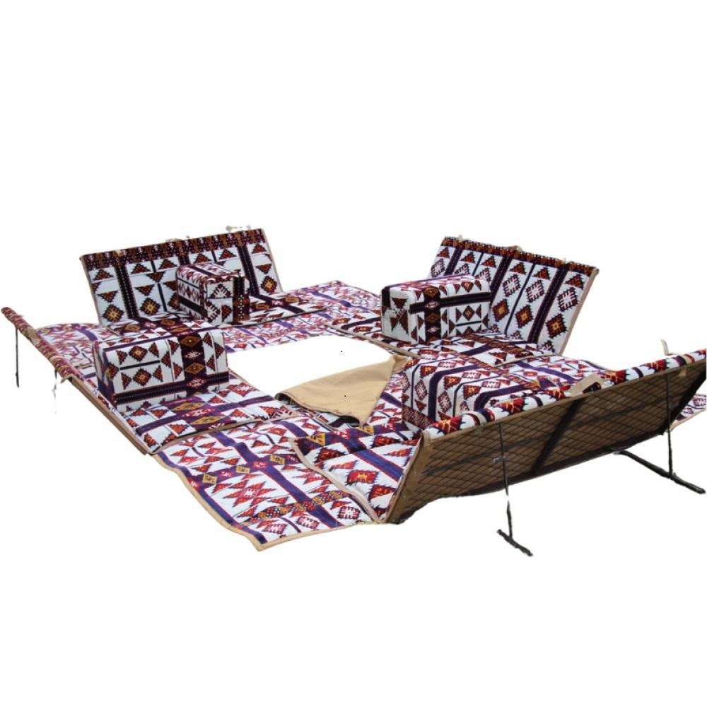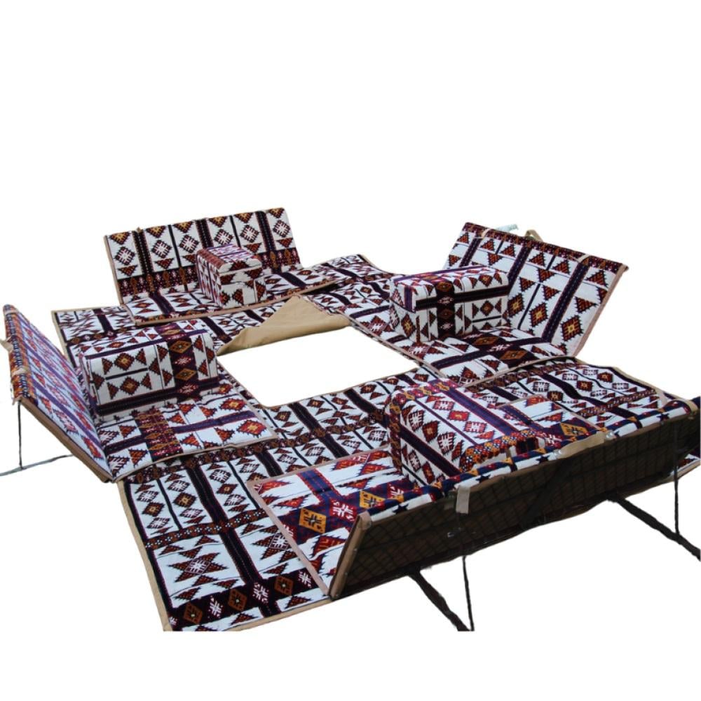 - يضفي قماش السدو التراثي طابعاً عربياً أصيلاً يجمّل رحلاتكم العائلية وجلساتكم في الهواء الطلق.